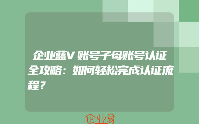 - 企业蓝V账号子母账号认证全攻略:如何轻松完成认证流程?