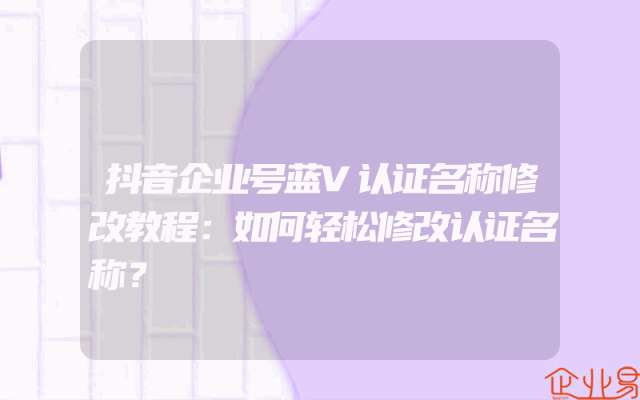 - 抖音企业号蓝V认证名称修改教程:如何轻松修改认证名称?