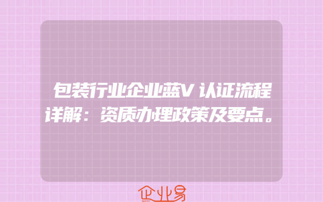 - 包装行业企业蓝V认证流程详解:资质办理政策及要点。