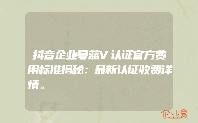 - 抖音企业号蓝V认证官方费用标准揭秘:最新认证收费详情。