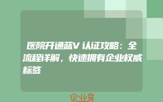 - 医院开通蓝V认证攻略:全流程详解,快速拥有企业权威标签