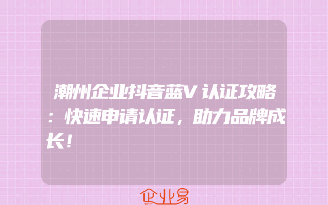 - 潮州企业抖音蓝V认证攻略:快速申请认证,助力品牌成长!