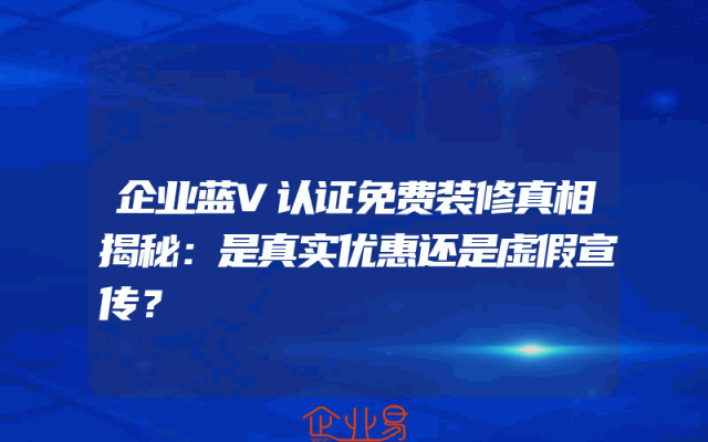 - 企业蓝V认证免费装修真相揭秘:是真实优惠还是虚假宣传?