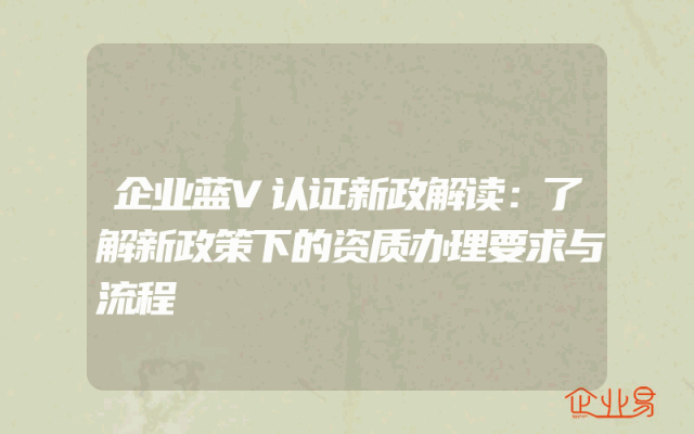 - 企业蓝V认证新政解读:了解新政策下的资质办理要求与流程