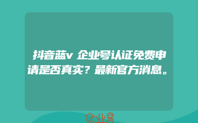 - 抖音蓝v企业号认证免费申请是否真实?最新官方消息。