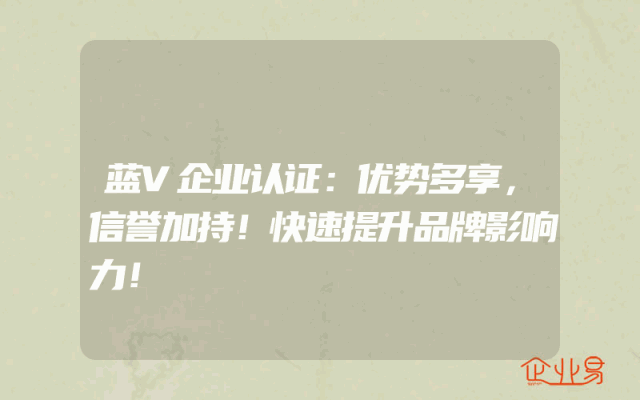 - 蓝V企业认证:优势多享,信誉加持!快速提升品牌影响力!