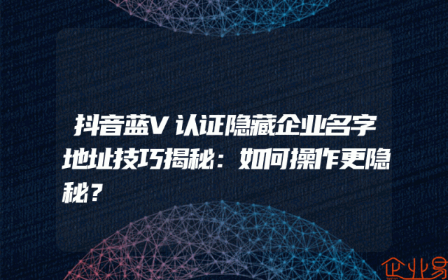 - 抖音蓝V认证隐藏企业名字地址技巧揭秘:如何操作更隐秘?