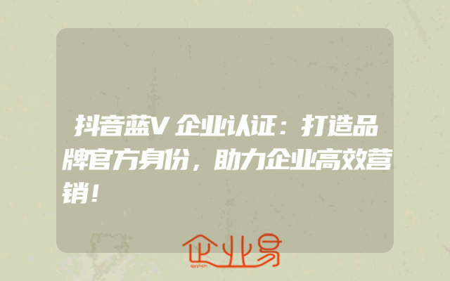 - 抖音蓝V企业认证:打造品牌官方身份,助力企业高效营销!