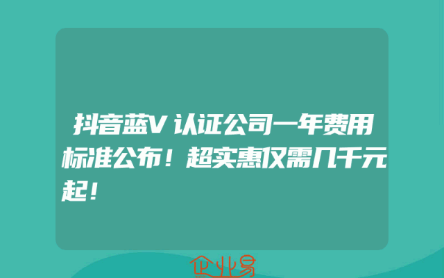 - 抖音蓝V认证公司一年费用标准公布!超实惠仅需几千元起!
