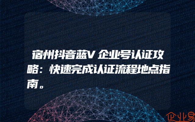 - 宿州抖音蓝V企业号认证攻略:快速完成认证流程地点指南。
