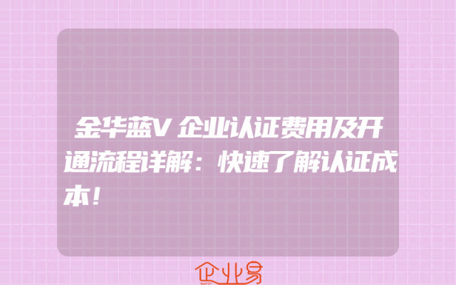 - 金华蓝V企业认证费用及开通流程详解:快速了解认证成本!
