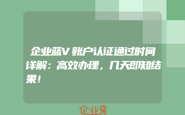 - 企业蓝V账户认证通过时间详解:高效办理,几天即知结果!