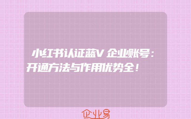 - 小红书认证蓝V企业账号:开通方法与作用优势全!