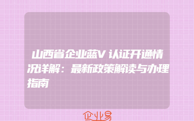 - 山西省企业蓝V认证开通情况详解:最新政策解读与办理指南