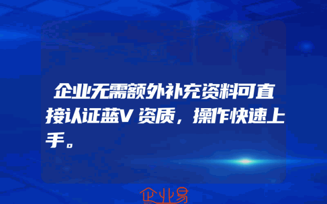 - 企业无需额外补充资料可直接认证蓝V资质,操作快速上手。