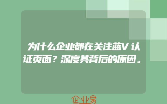 - 为什么企业都在关注蓝V认证页面?深度其背后的原因。