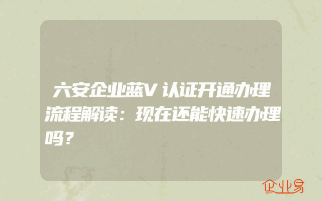 - 六安企业蓝V认证开通办理流程解读:现在还能快速办理吗?