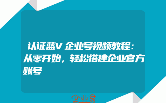 - 认证蓝V企业号视频教程:从零开始,轻松搭建企业官方账号