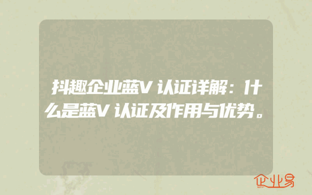 - 抖趣企业蓝V认证详解:什么是蓝V认证及作用与优势。