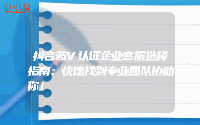 - 抖音蓝V认证企业客服选择指南:快速找到专业团队协助你!