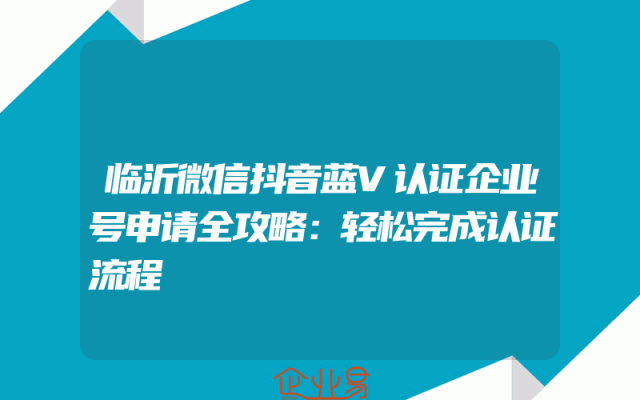 - 临沂微信抖音蓝V认证企业号申请全攻略:轻松完成认证流程