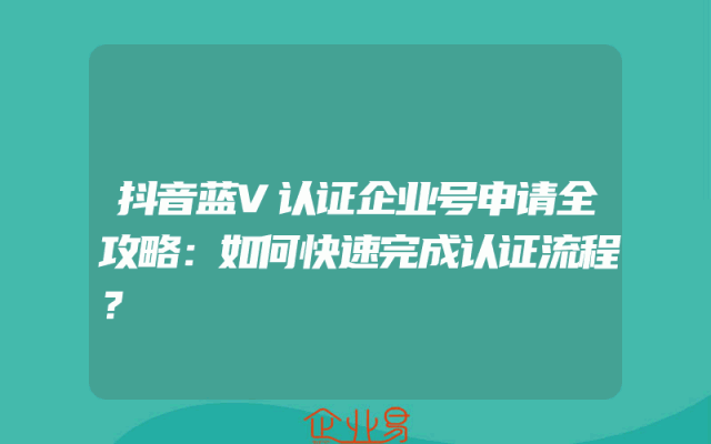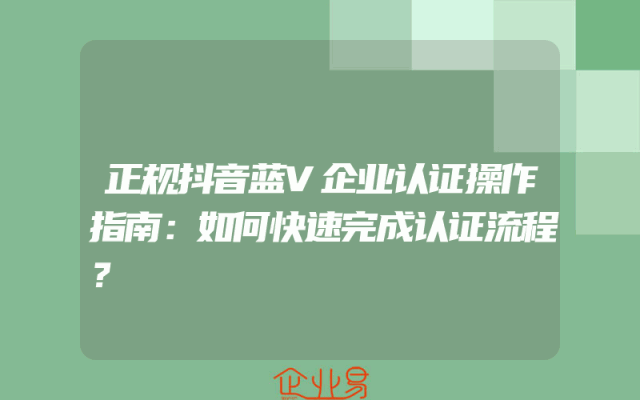 - 正规抖音蓝V企业认证操作指南:如何快速完成认证流程?