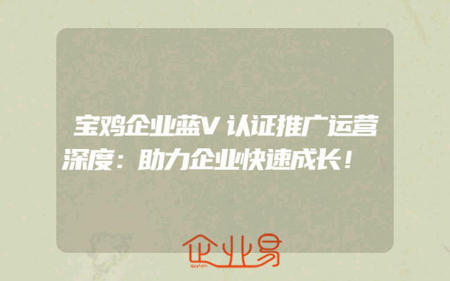 - 宝鸡企业蓝V认证推广运营深度:助力企业快速成长!