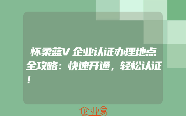 - 怀柔蓝V企业认证办理地点全攻略:快速开通,轻松认证!