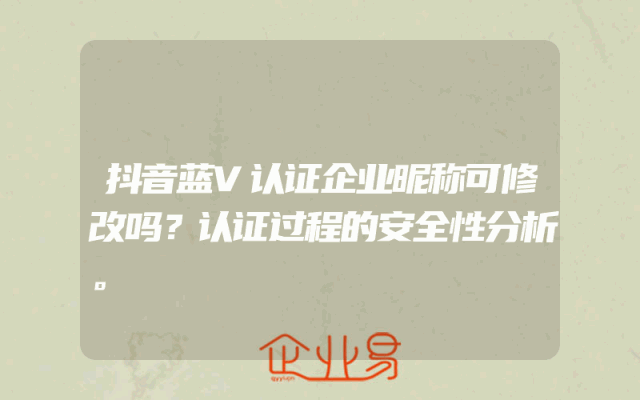 - 抖音蓝V认证企业昵称可修改吗?认证过程的安全性分析。