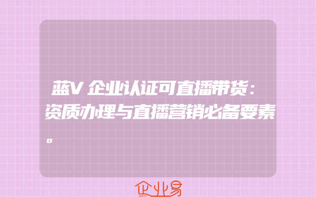 - 蓝V企业认证可直播带货:资质办理与直播营销必备要素。