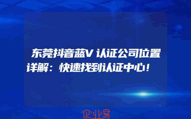 - 东莞抖音蓝V认证公司位置详解:快速找到认证中心!