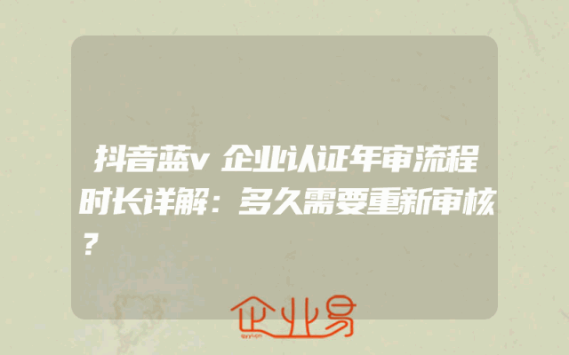 - 抖音蓝v企业认证年审流程时长详解:多久需要重新审核?