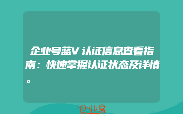 - 企业号蓝V认证信息查看指南:快速掌握认证状态及详情。