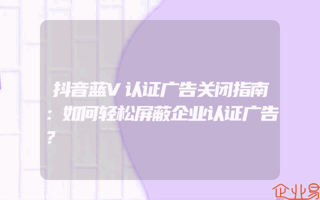 - 抖音蓝V认证广告关闭指南:如何轻松屏蔽企业认证广告?