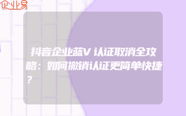 - 抖音企业蓝V认证取消全攻略:如何撤销认证更简单快捷?