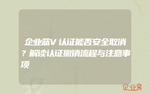 - 企业蓝V认证能否安全取消?解读认证撤销流程与注意事项