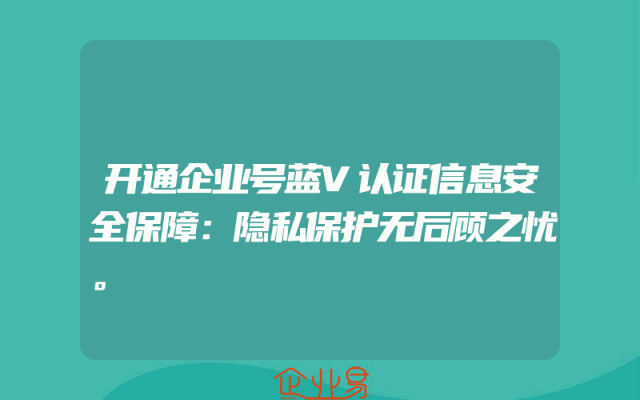 - 开通企业号蓝V认证:信息安全保障与隐私保护无忧一、企业号蓝V认证的重要性在当今信息化社会,信息安全已成为企业发展的重要基石。企业号蓝V认证作为对企业身份的官方确认,不仅提升了企业的公信力,更是对信息安全的一层重要保障。《p》通过蓝V认证,企