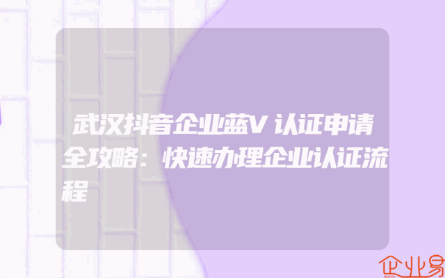 - 武汉抖音企业蓝V认证申请全攻略:快速办理企业认证流程