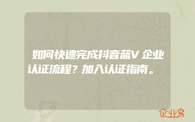 - 如何快速完成抖音蓝V企业认证流程?加入认证指南。