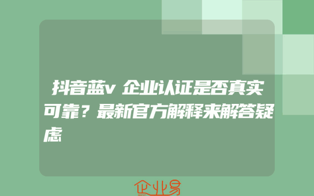 - 抖音蓝v企业认证是否真实可靠?最新官方解释来解答疑虑