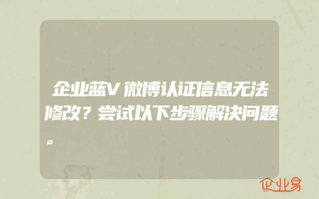 - 企业蓝V微博认证信息无法修改?尝试以下步骤解决问题。