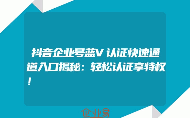 - 抖音企业号蓝V认证快速通道入口揭秘:轻松认证享特权!