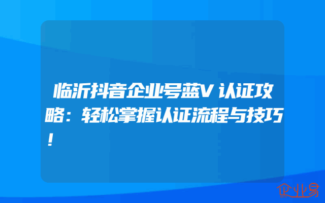 - 临沂抖音企业号蓝V认证攻略:轻松掌握认证流程与技巧!