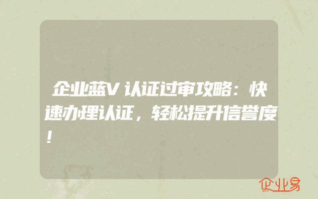 - 企业蓝V认证过审攻略:快速办理认证,轻松提升信誉度!