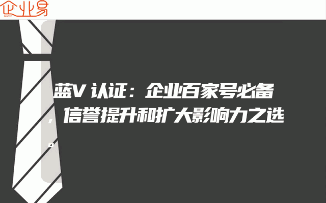- 蓝V企业认证:助您业务飞速发展——多重优势提升竞争力一、蓝V企业认证的重要性在当今数字化时代,企业开展业务已经离不开网络的支持。为了在网络世界中建立良好的企业形象,并获得更多的商业机会,蓝V企业认证显得尤为重要。蓝V认证不仅是对企业身份的官