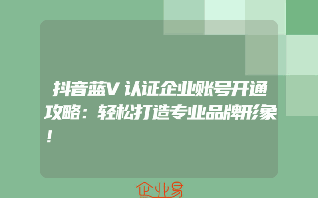 - 抖音蓝V认证企业账号开通攻略:轻松打造专业品牌形象!
