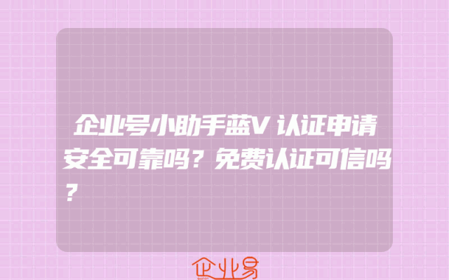 - 企业号小助手蓝V认证申请安全可靠吗?免费认证可信吗?