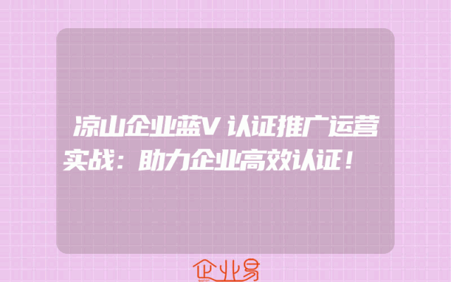 - 凉山企业蓝V认证推广运营实战:助力企业高效认证!