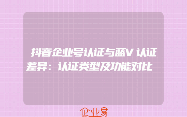 - 抖音企业号认证与蓝V认证差异:认证类型及功能对比