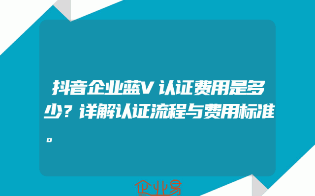 - 抖音企业蓝V认证费用是多少?详解认证流程与费用标准。